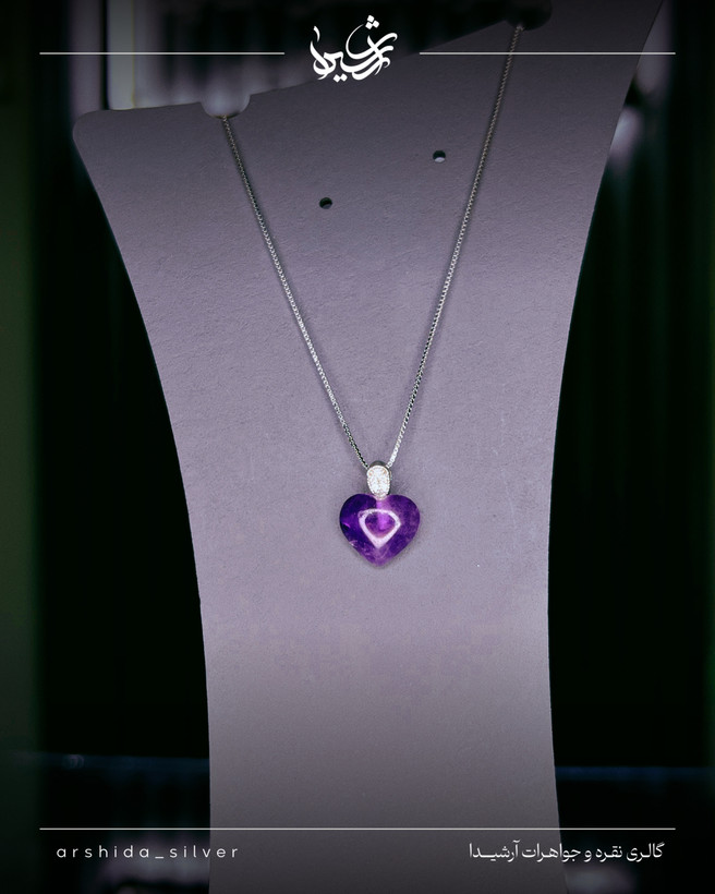 گردنبند فانتزی قلب با سنگ آمیتیست بنفش